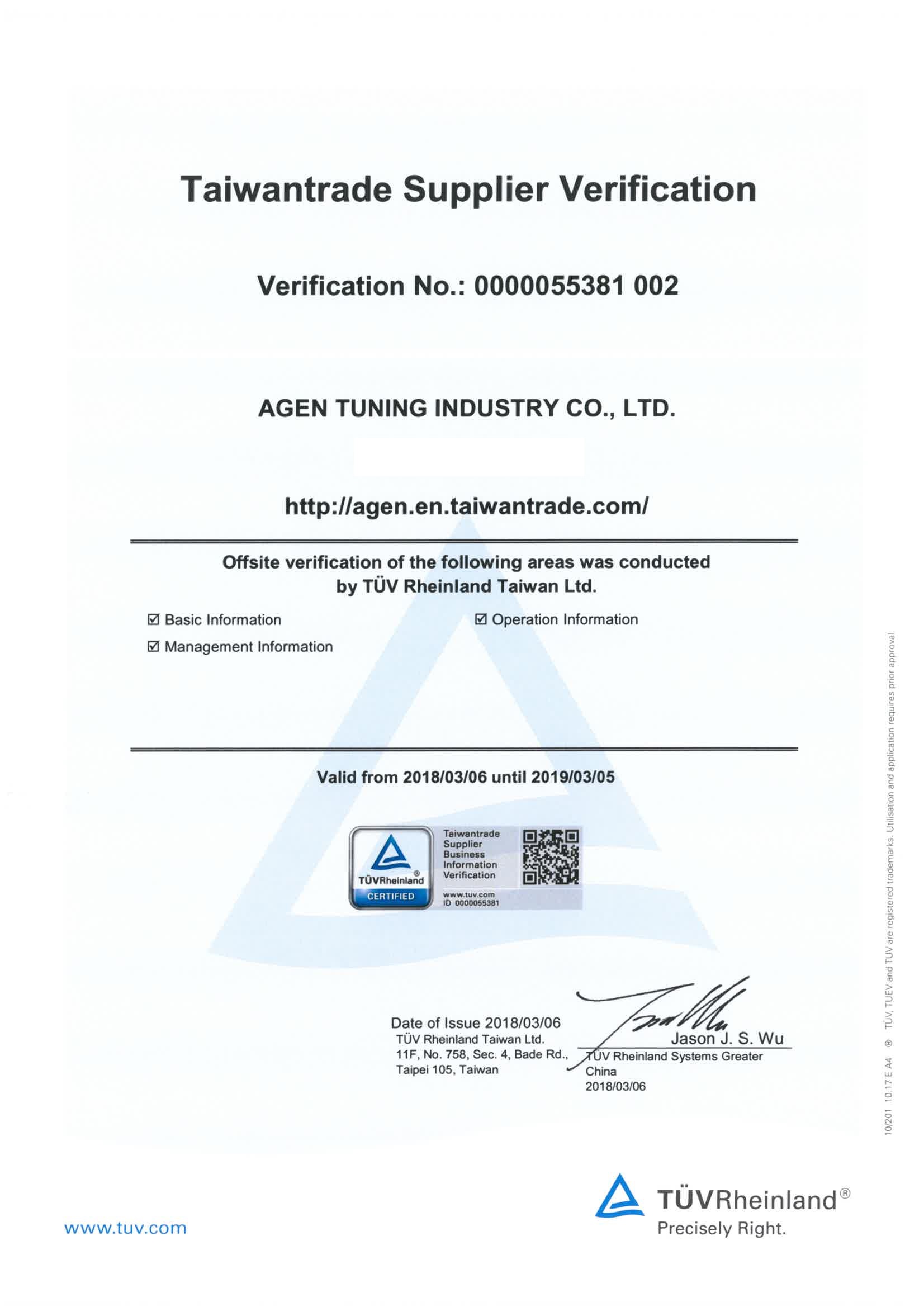 2018 Agen Tuning TUV Supplier Verification