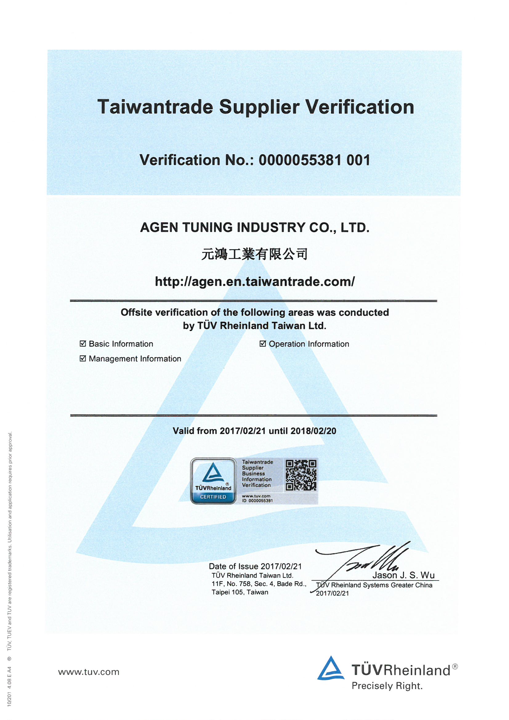 2017 Agen Tuning TUV Supplier Verification